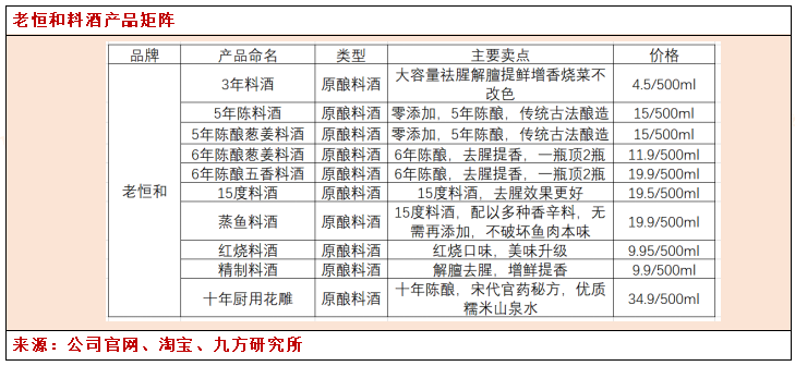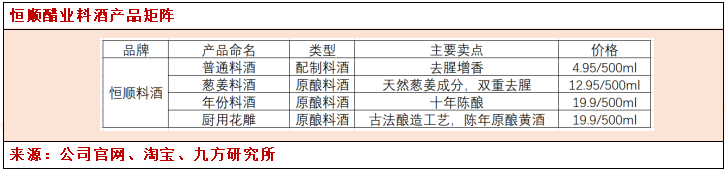 公司对于食醋和料酒有独到的见解,推出差异化产品。料酒采用川酒白酒酿造工艺,香气馥郁且去腥效果更强。