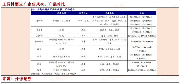 (1)低端:8元以内,基本上是配置料酒。品牌商大多会针对低端料酒出1L、1.75L等大容量包装,主要卖给餐饮客户。低端料酒会一般会添加谷氨酸钠、呈味剂、色素和食用酒精等,去腥效果差,营养价值低。