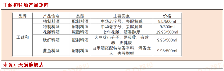 大桶精制料酒:大容量低端料酒、主打经济实惠,低端料酒线上销量占王致和料酒的90%以上,但王致和有推陈出新的举措,近期推出了中高端料酒新品。
