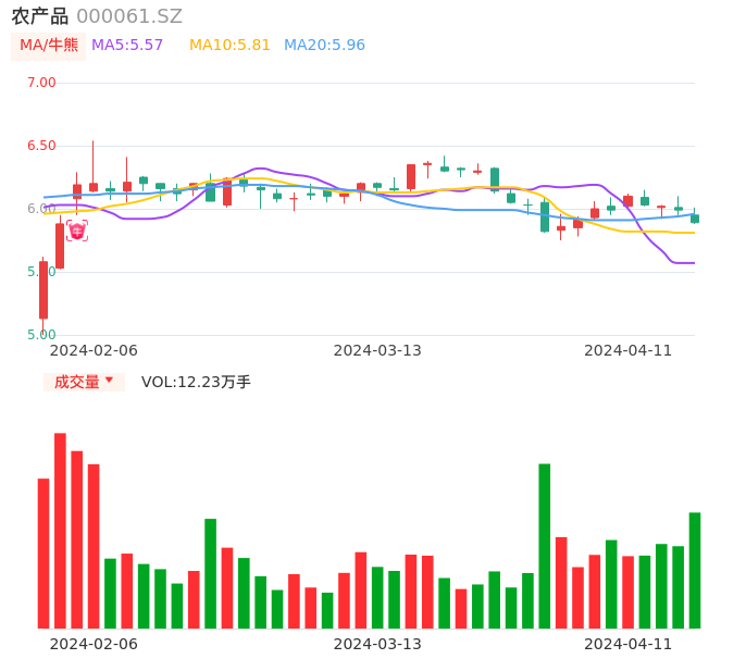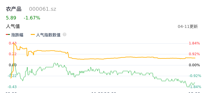 04月11日,农产品收报5.89,股价涨幅-1.67%,成交金额7264.18万元,换手率0.72%。