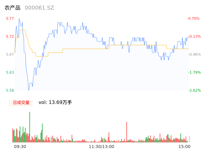 04月15日,农产品收报5.72,股价涨幅-0.17%,成交金额7796.86万元,换手率0.81%。