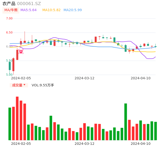 04月10日,农产品收报5.99,股价涨幅-0.50%,成交金额5757.27万元,换手率0.56%。