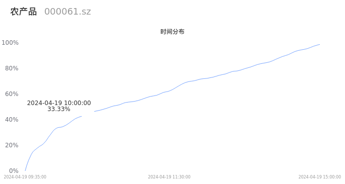 000061农产品2024年04月19日成交13.03万手,成交金额7630.93万元,相较昨日放量2.85万手,换手率0.77%,成交清淡。