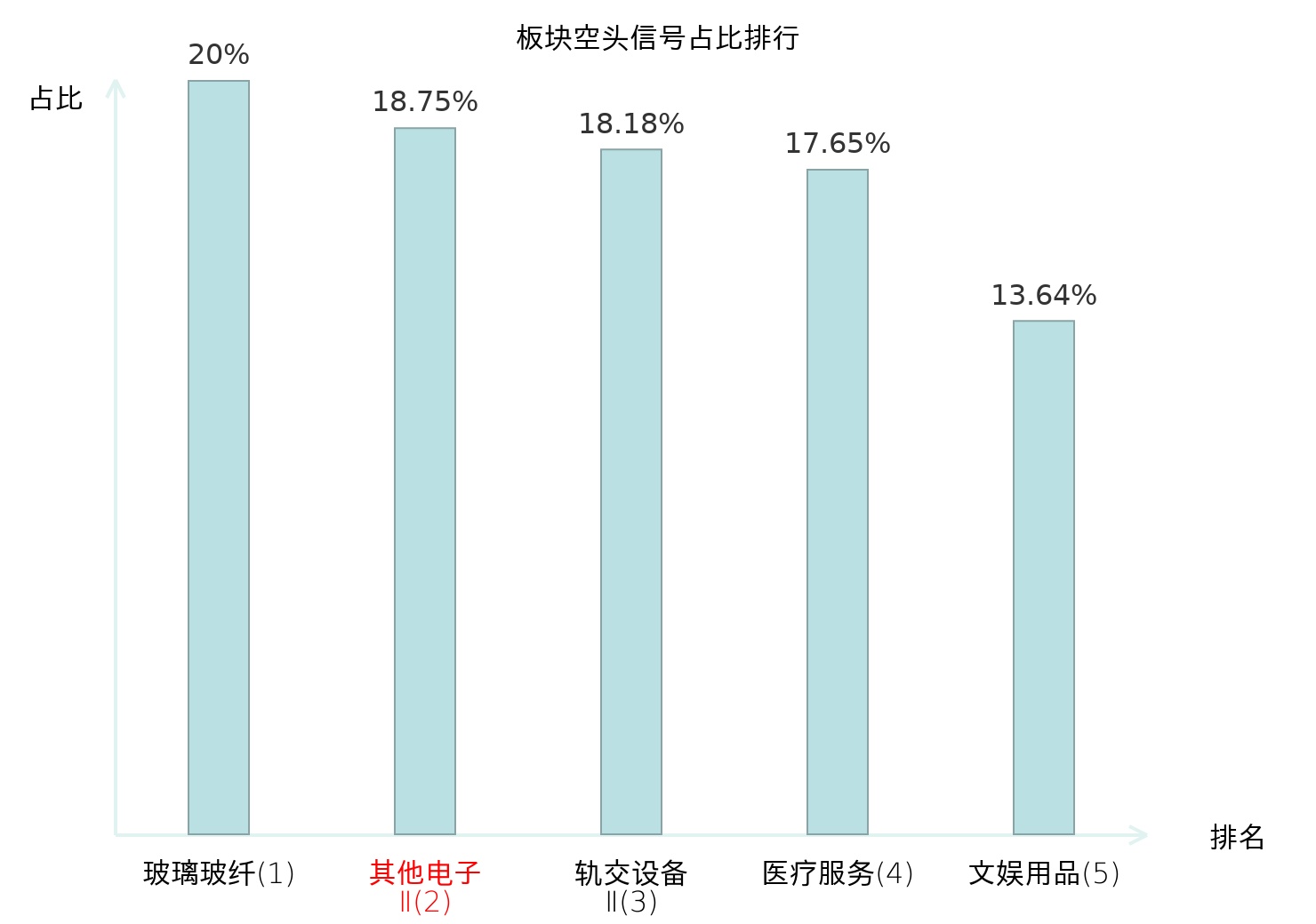 全市场所有行业板块中主力空头信号占比排名中,玻璃玻纤板块位居第一。医疗服务板块名次提升最快,较昨日上升126位。