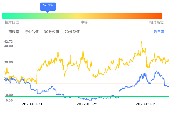 2023年09月20日,中兴通讯上涨0.34%收于32.43,今日成交金额9.73亿元。下文将从市盈率PETTM、市净率PB、市现率3个角度去分析公司估值情况。