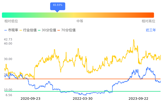 2023年09月22日,中兴通讯上涨4.67%收于34.76,今日成交金额38.98亿元。下文将从市盈率PETTM、市净率PB、市现率3个角度去分析公司估值情况。