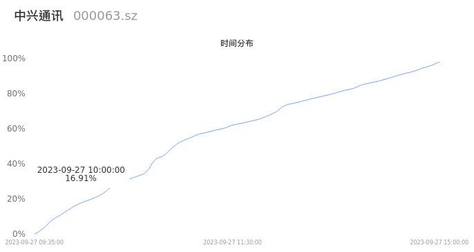 000063中兴通讯2023年09月27日成交84.14万手,成交金额27.87亿元,相较昨日放量28.18万手,换手率2.09%,成交清淡。