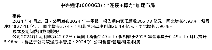 值得注意的是:2024年04月国联证券的张宁分析师,首次发布关于中兴通讯的研究报告,标题为:中兴通讯(000063):“连接+算力”加速布局。