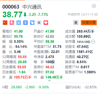 12月11日,一则有关“中兴通讯可能因涉嫌海外行贿向美国支付超过10亿美元的和解金”的消息在市场发酵。受此影响,中兴通讯A股、H股11日早盘双双下跌。截至早盘收市,中兴通讯A股跌7.73%,H股跌9.36%。