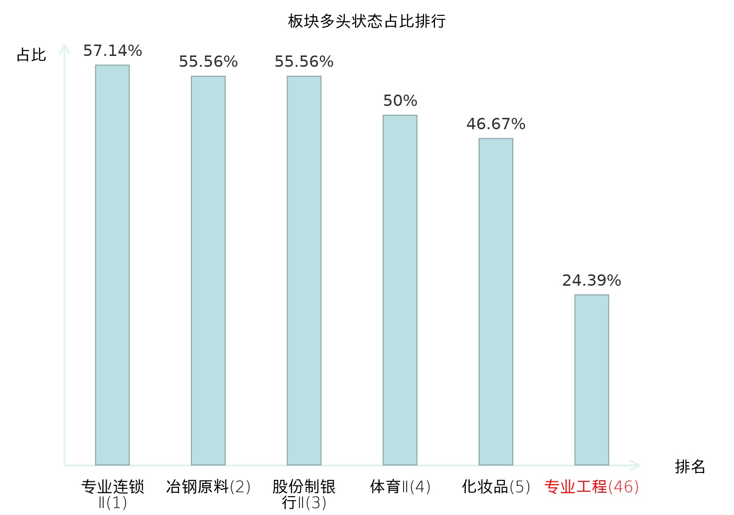 从主力宝信号数据分析,北方国际所属的专业工程板块中共10只股票处于主力多头状态,主力多头状态占比在全行业中排名第46位,较昨日上升10位。排名越高说明主力对于板块整体看多意愿越强;这表明主力对专业工程行业的信心增强,为投资者提供了积极的市场信号。全市场所有行业板块中,专业连锁Ⅱ板块的主力多头状态占比位居第一;乘用车板块名次提升最快,较昨日上升85位。这些变动揭示了不同行业间主力资金的偏好变化,有助于投资者理解当前市场的动态和趋势。