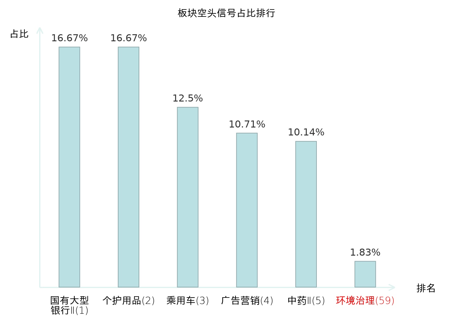 全市场所有行业板块中主力空头信号占比排名中,国有大型银行Ⅱ板块位居第一。医疗服务板块名次提升最快,较昨日上升110位。