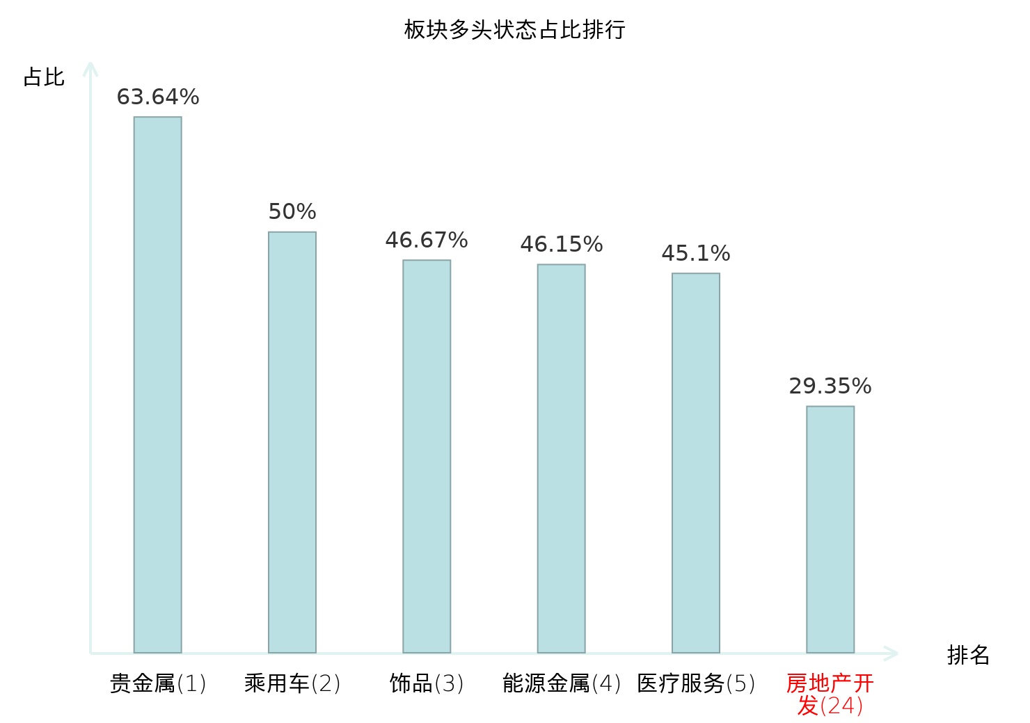 全市场所有行业板块中主力多头状态占比排名中,贵金属板块位居第一。电机Ⅱ板块名次提升最快,较昨日上升61位。