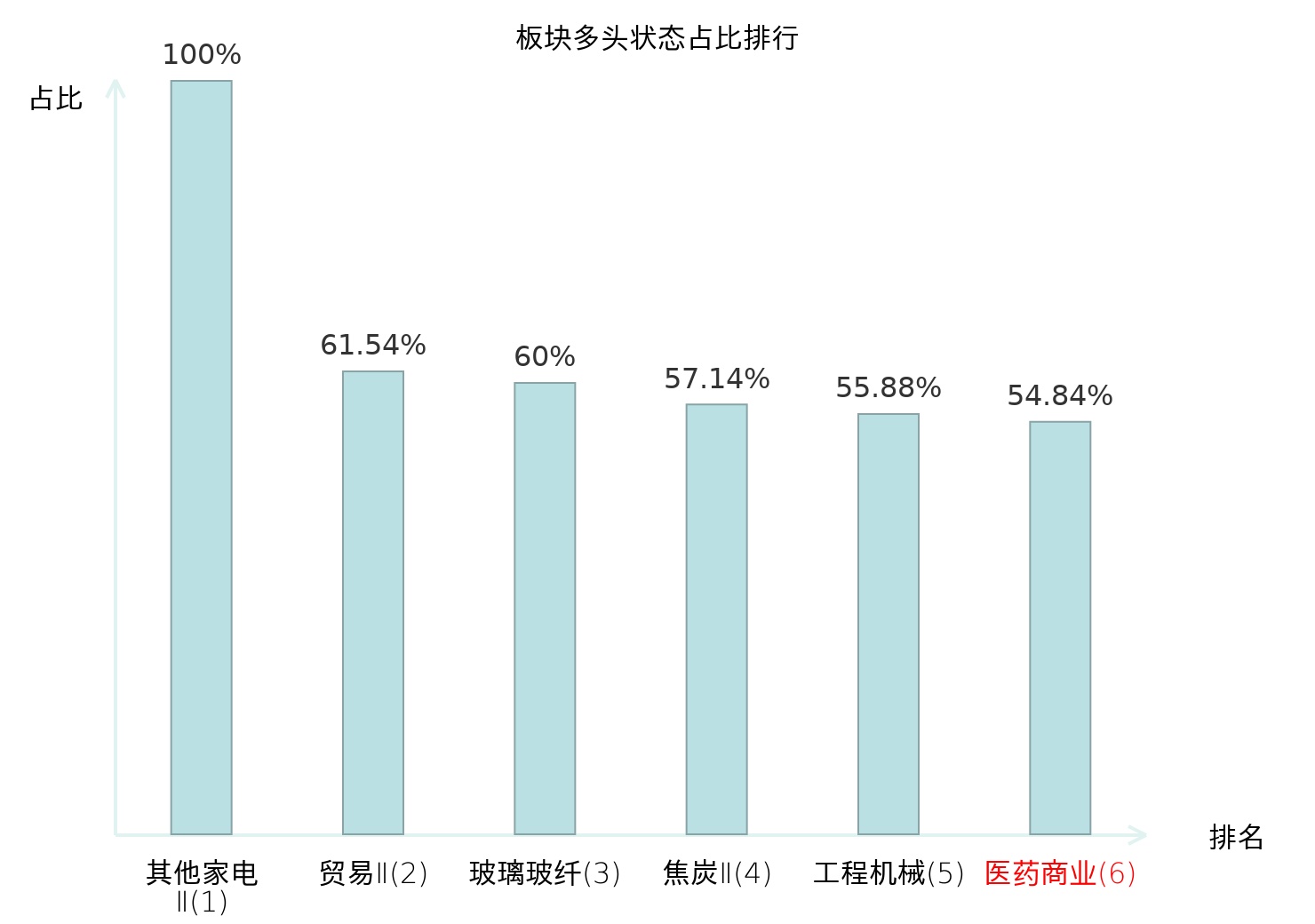 全市场所有行业板块中主力多头状态占比排名中,其他家电Ⅱ板块位居第一。航海装备Ⅱ板块名次提升最快,较昨日上升98位。