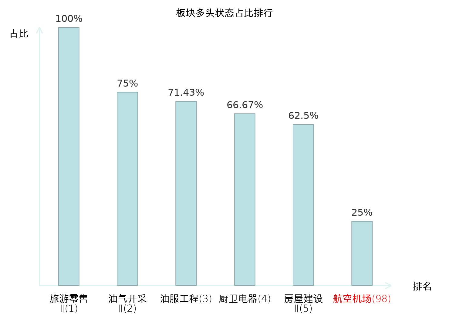 全市场所有行业板块中主力多头状态占比排名中,旅游零售Ⅱ板块位居第一。焦炭Ⅱ板块名次提升最快,较昨日上升58位。