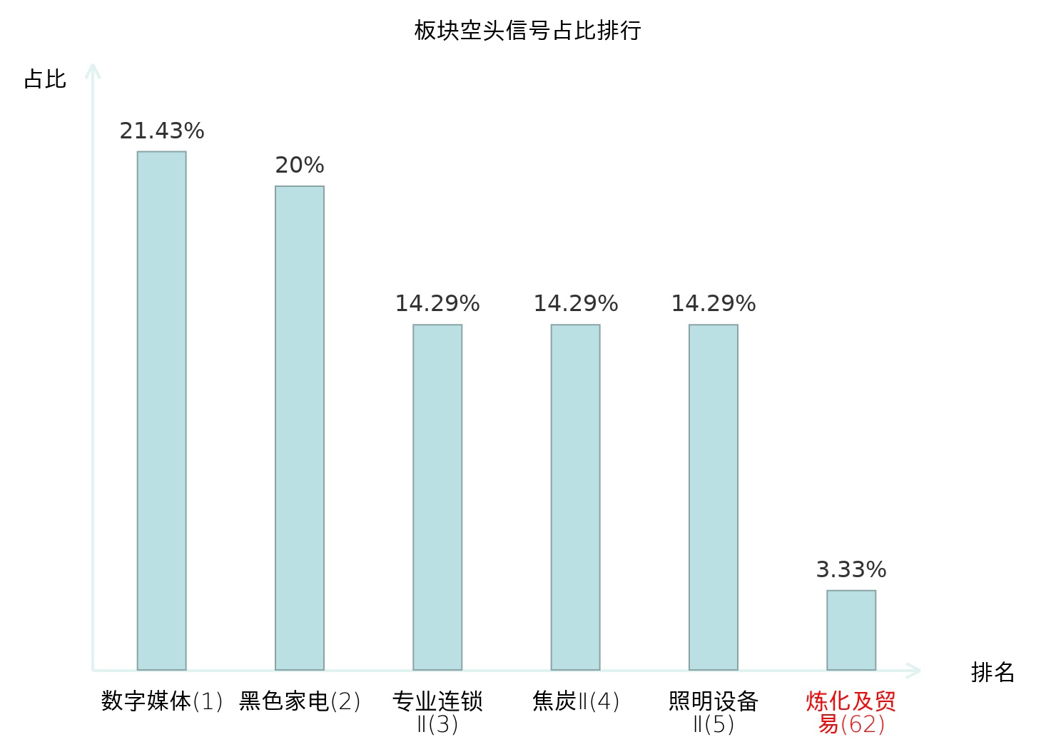 全市场所有行业板块中主力空头信号占比排名中,数字媒体板块位居第一。装修装饰Ⅱ板块名次提升最快,较昨日上升110位。