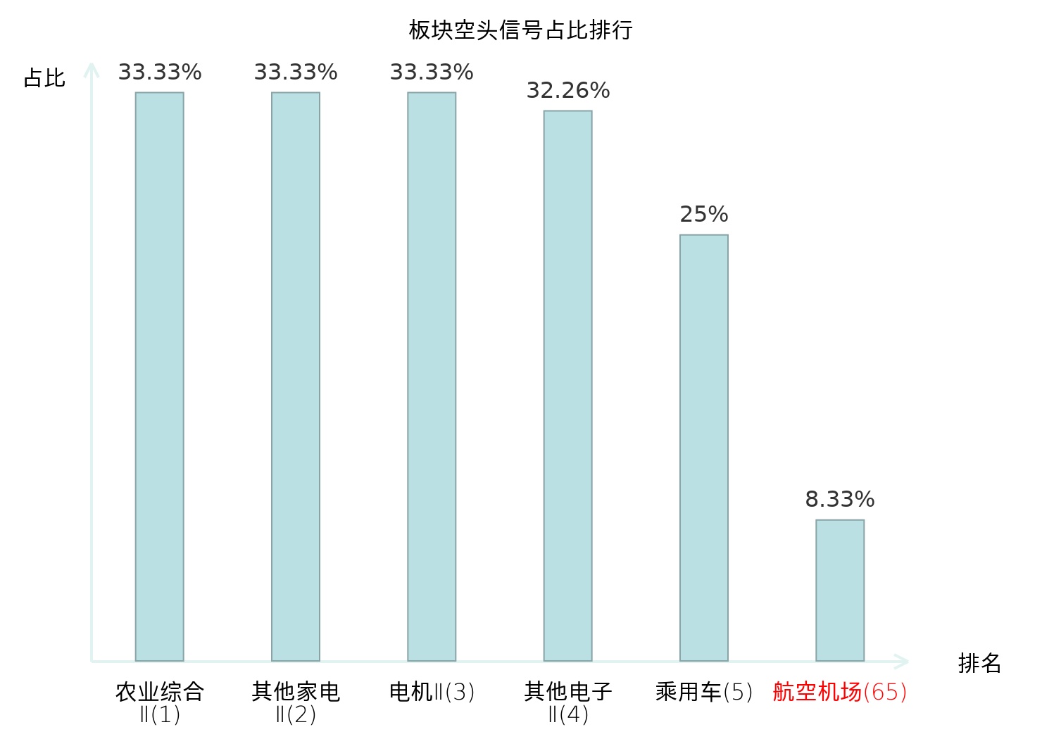 全市场所有行业板块中主力空头信号占比排名中,农业综合Ⅱ板块位居第一。电子化学品Ⅱ板块名次提升最快,较昨日上升116位。