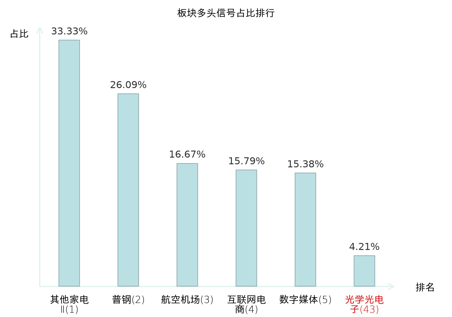 全市场所有行业板块中主力多头信号占比排名中,其他家电Ⅱ板块位居第一。其他家电Ⅱ板块名次提升最快,较昨日上升129位。