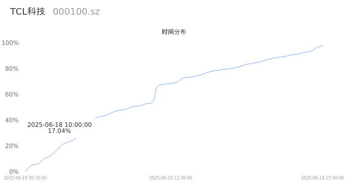 000100TCL科技2025年06月18日成交143.88万手,成交金额6.28亿,相较昨日缩量19.74万手,换手率0.79%,成交清淡。