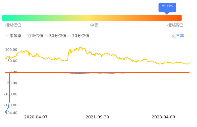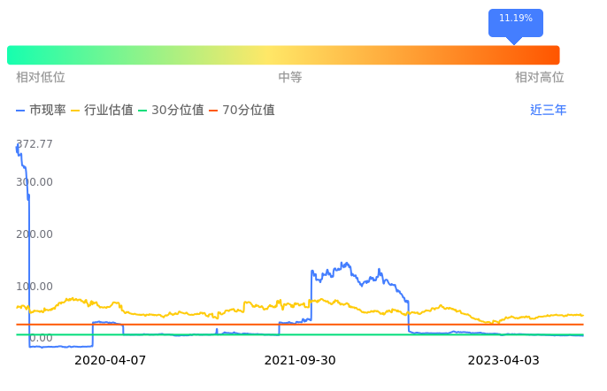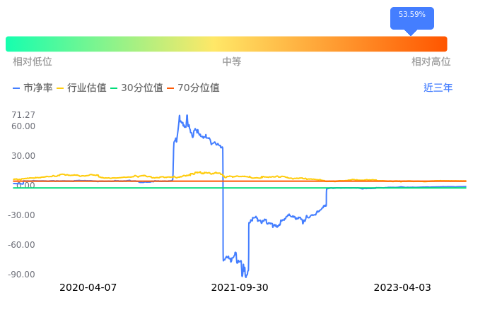 *ST宜康当前市净率PB为-1.12,在所属的医疗服务中,市净率PB排45,前五名分别为ST中珠市净率0.98、创新医疗市净率1.64、睿智医药市净率1.69、贝瑞基因市净率1.95、诚达药业市净率1.98。*ST宜康当前市净率PB为-1.12,超过近3年53.59%的历史数据。