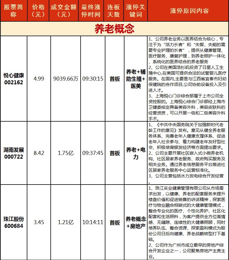 消息刺激下,今日养老概念股开盘拉升,宜华健康、湖南发展、悦心健康等个股强势涨停!!