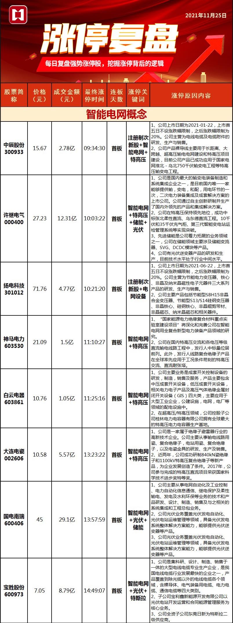 今日特高压板块及智能电网概念崛起,中辰股份、金现代、安靠智电、神马电力、国电南瑞等近10股涨停或涨超10%!!