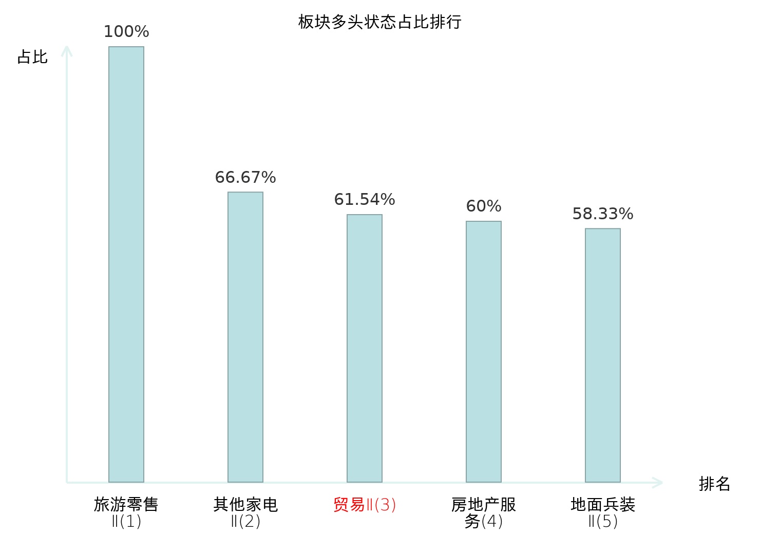 从主力宝信号数据分析,中成股份所属的贸易Ⅱ板块中共有8只股票处于主力多头状态,主力多头状态占比在全行业中排名第3位,较昨日上升2位。排名上升表明主力对板块整体看多的意愿增强,为投资者提供了积极的市场信号。全市场所有行业板块中,旅游零售Ⅱ板块的主力多头状态占比最高,位居第一;化妆品板块名次提升最快,较昨日上升62位。这些变动揭示了主力资金在不同行业间的偏好调整,有助于投资者理解当前市场的动态和趋势。