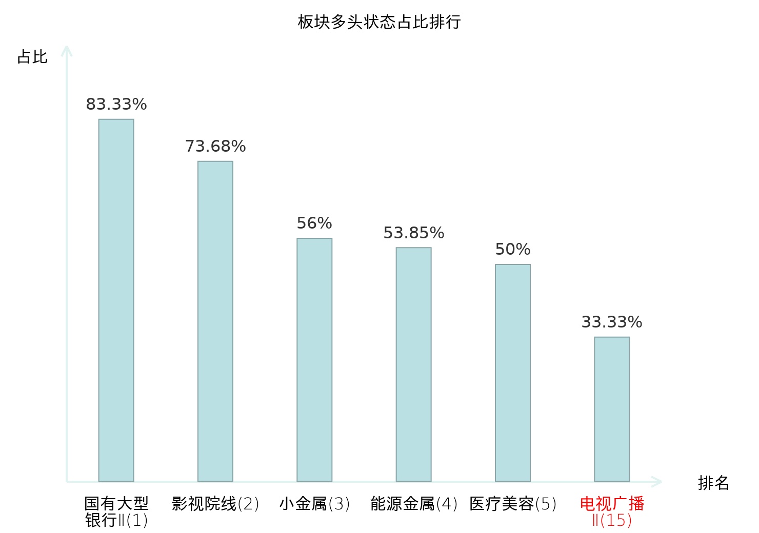 从主力宝信号数据分析,华数传媒所属的电视广播Ⅱ板块中共5只股票处于主力多头状态,主力多头状态占比在全行业中排名第15位,较昨日上升99位;较高的排名表明主力对于该板块整体看多意愿较强;此次排名大幅上升反映主力对该板块态度明显转强;全市场所有行业板块中主力多头状态占比排名中,国有大型银行Ⅱ板块位居第一;电视广播Ⅱ板块名次提升最快,较昨日上升99位;这些变动揭示了主力资金在不同行业间的偏好强化趋势,为投资者判断板块相对强度及潜在关注方向提供了客观依据。