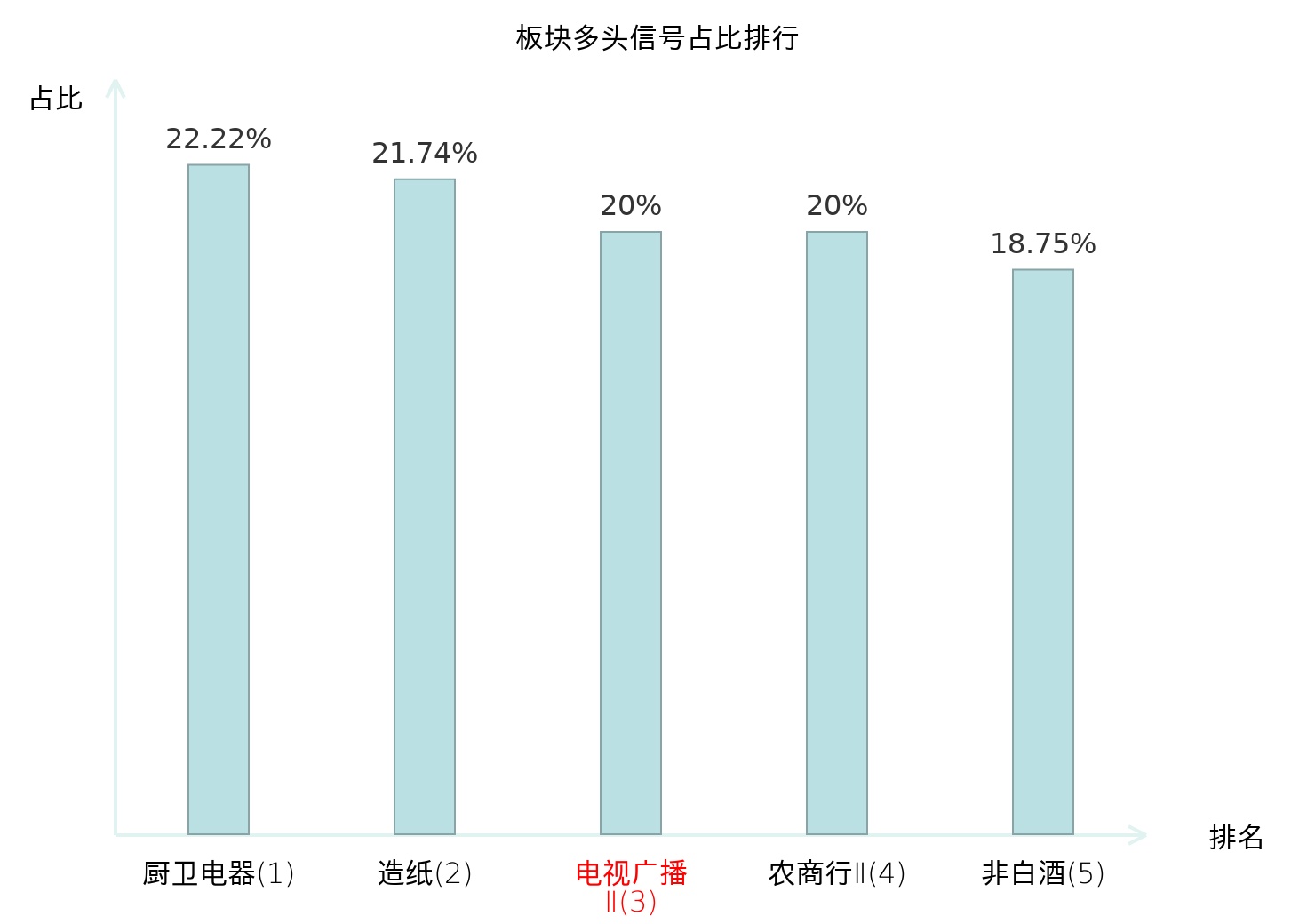 全市场所有行业板块中主力多头信号占比排名中,厨卫电器板块位居第一。厨卫电器板块名次提升最快,较昨日上升115位。
