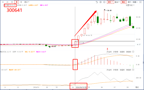 一般这种方法选出来的股票都比较强势,会有一段大涨,例子如下截图。