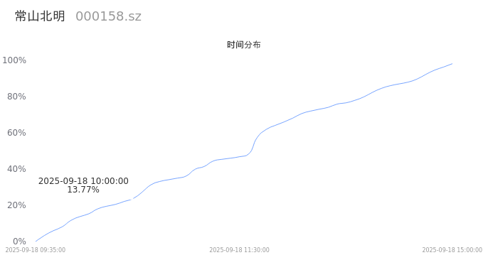 000158常山北明2025年09月18日成交95.44万手,成交金额23.39亿,相较昨日放量36.44万手,换手率6.01%,成交清淡。