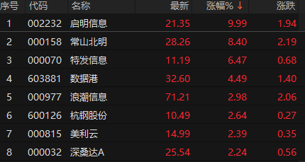上证报中国证券网讯 8月26日早盘,国资云概念股走强,截至9时50分,启明信息涨停,常山北明涨逾8%,特发信息涨超6%,数据港、浪潮信息等跟涨。