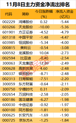 资金净流出超5亿元