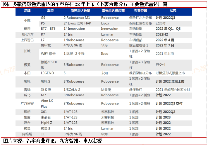 2)激光雷达派:使用激光雷达,强调“强硬件弱算法”。考虑特斯拉先发优势和算法优势,增强硬件部署是最有效且最快实现追赶的方案,目前激光雷达是除了特斯拉以外大部分主流车厂的共同选择。