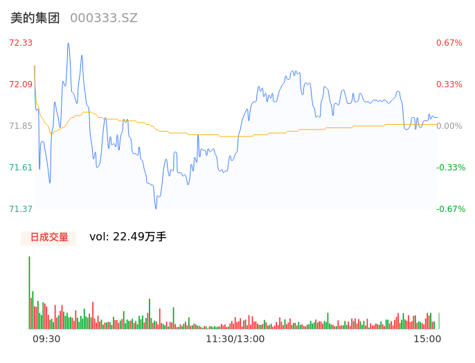 05月10日,美的集团收报71.88,股价涨幅0.04%,成交金额16.16亿元,换手率0.33%。