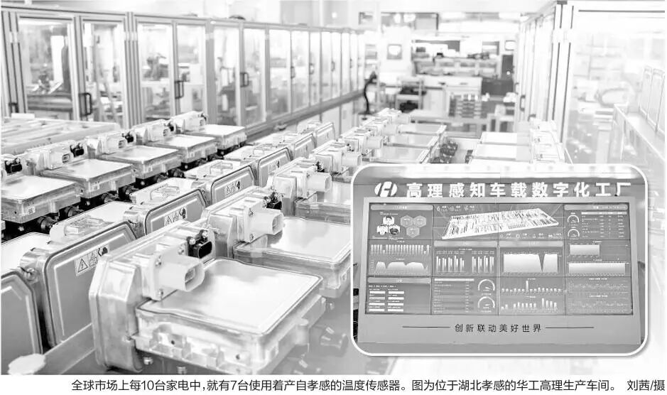 这里,每天有超过500万只传感器下线,其中相当一部分,将嵌入全球各大品牌的家电产品中。一个鲜为人知的事实是,全球市场上每10台家电中,就有7台使用着产自孝感的温度传感器。