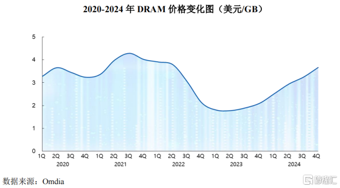 2022年至2023年期间,受上游DRAM产品库存水平较高、下游市场需求低迷的影响,DRAM行业经历了深度下行周期,DRAM产品的销售价格大幅下滑。