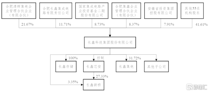 直接持有公司5%以上股份的股东为清辉集电、长鑫集成、大基金二期、合肥集鑫及安徽省投,分别持有长鑫科技21.67%、11.71%、8.73%、8.37%及7.91%的股权。其中,合肥集鑫为直接员工持股平台。