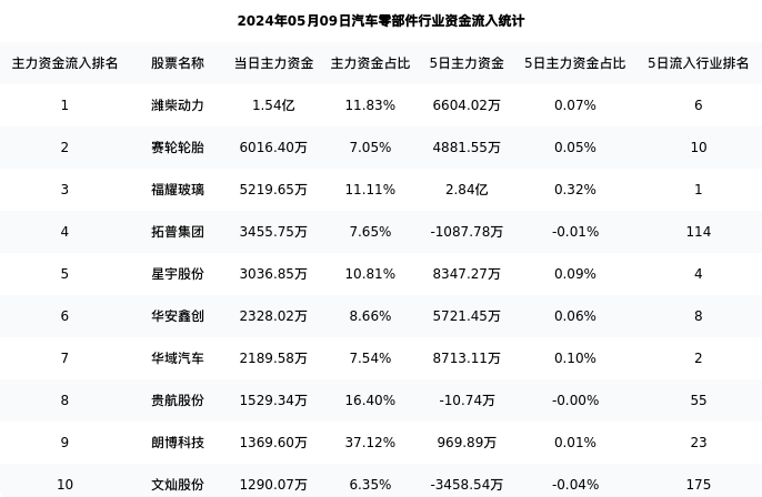 从主力资金流向来看,汽车零部件行业今日主力资金流入81.10亿元,在所有申万二级行业中排名:6/131。