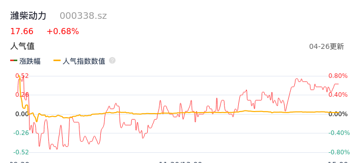 04月26日,潍柴动力收报17.66,股价涨幅0.68%,成交金额7.96亿元,换手率0.91%。