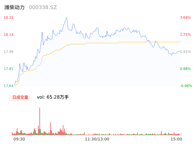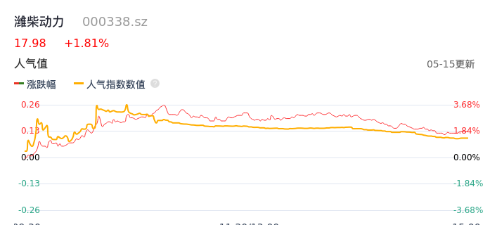 05月15日,潍柴动力收报17.98,股价涨幅1.81%,成交金额11.79亿元,换手率1.31%。