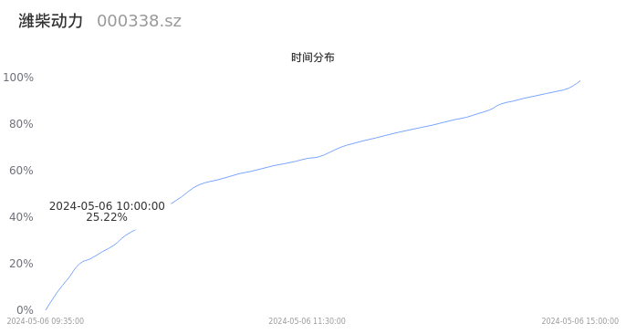 000338潍柴动力2024年05月06日成交126.31万手,成交金额21.62亿元,相较昨日放量58.45万手,换手率2.54%,成交清淡。