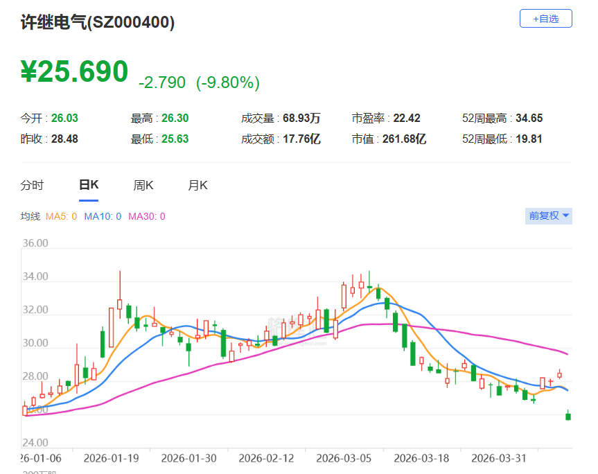 A股异动丨许继电气盘中跌停 毛利率下滑导致Q1“增收不增利”