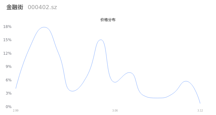 然后我们来看下当日成交的价格分布。将今天股票的最低价与最高价之差形成的价格区间进行切片,并画直方图进行分析,观察成交量在价格区间的分布情况。可以发现,当日的成交分布呈现左偏峰分布,这说明,该股票大部分成交集中在中位数以下,说明交易重心下降,近期可能会存在短线下跌风险。