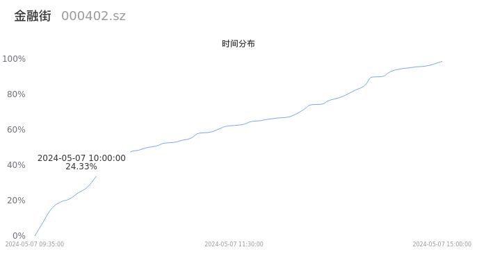 000402金融街2024年05月07日成交42.65万手,成交金额1.30亿元,相较昨日缩量5.59万手,换手率1.43%,成交清淡。