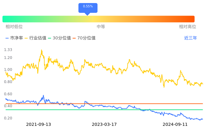 金融街当前市净率PB为0.18,在所属的房地产开发中,市净率PB排1,前五名分别为金融街市净率0.18、荣盛发展市净率0.22、绿地控股市净率0.24、福星股份市净率0.24、华侨城A市净率0.27。金融街当前市净率PB为0.18,超过近3年0.55%的历史数据。