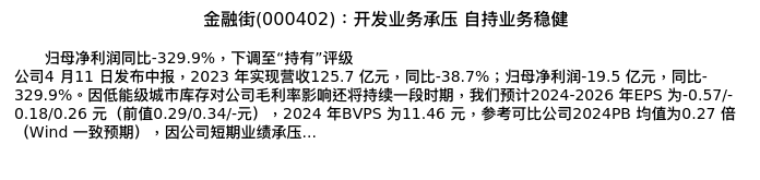 值得注意的是:2024年04月华泰证券的陈慎/刘璐/林正衡分析师,首次发布关于金融街的研究报告,标题为:金融街(000402):开发业务承压 自持业务稳健。