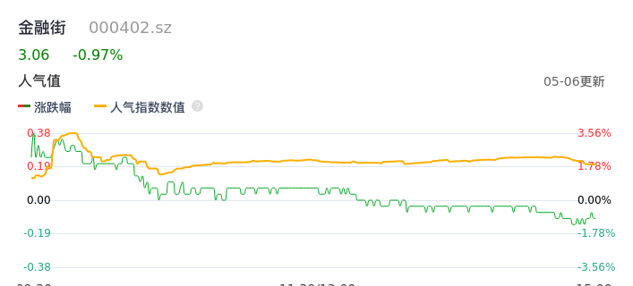 05月06日,金融街收报3.06,股价涨幅-0.97%,成交金额1.51亿元,换手率1.61%。