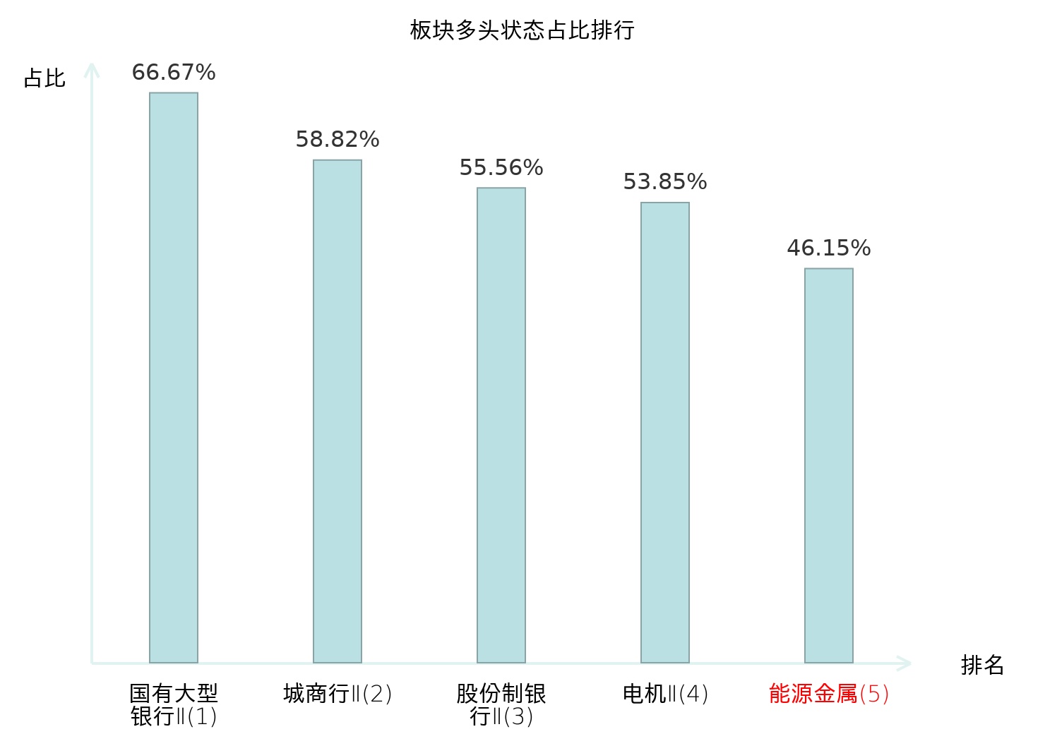 全市场所有行业板块中主力多头状态占比排名中,国有大型银行Ⅱ板块位居第一。自动化设备板块名次提升最快,较昨日上升57位。