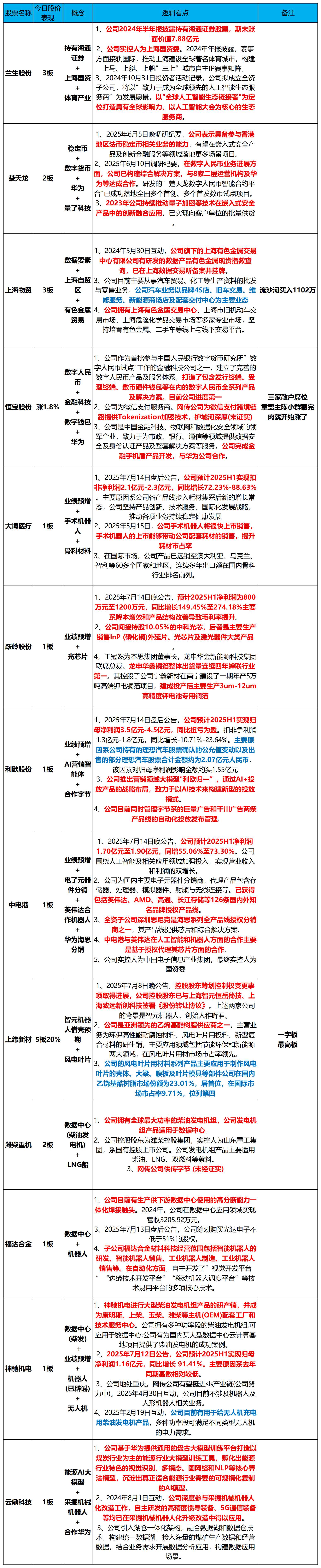 概念:能源AI大模型+采掘机械机器人+合作华为(详情见上方表格)。