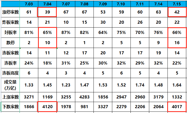 历史总是惊人的相似,今天和7月4号的涨停数据非常像。涨停家数来到了42家,封板率66%,跌停16家,下跌4017家。